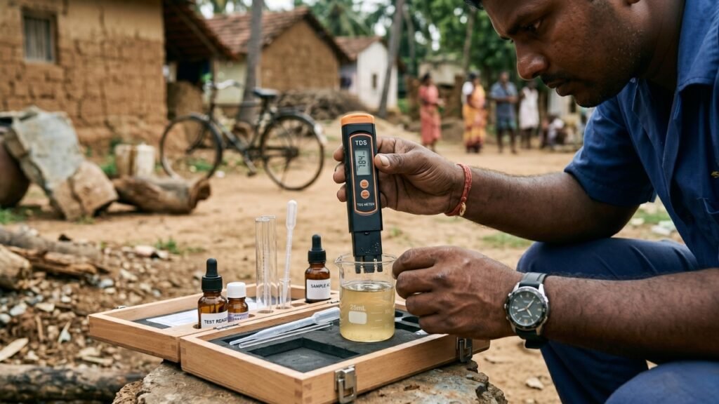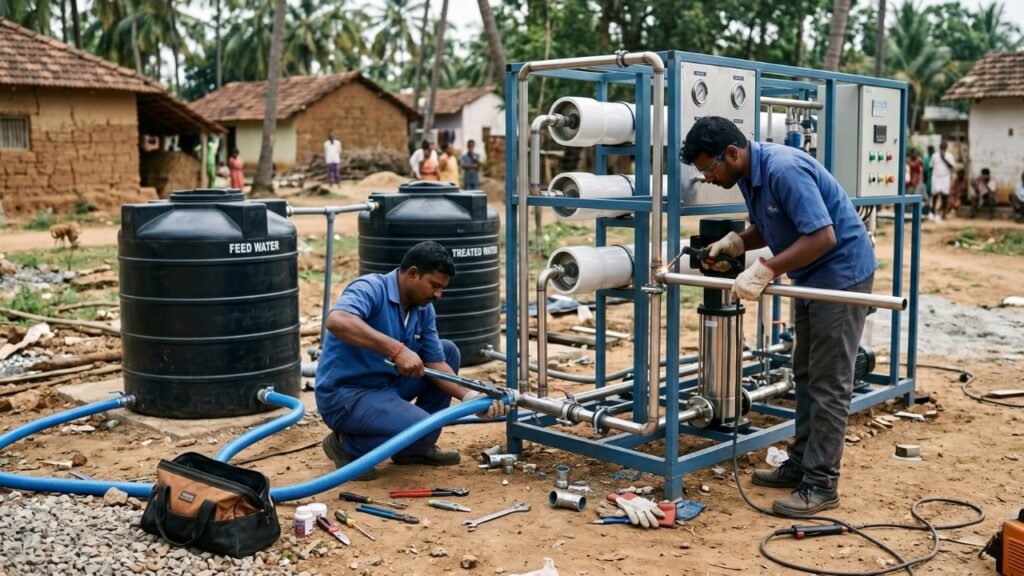 The result: a 500 LPH plant installed in a village with 3,000 people (a plant that can realistically serve 1,000–1,500). Or a plant installed with the wrong pre-treatment for the specific contamination profile of the local borewell – so fluoride or iron passes through the RO membrane and the water coming out of the plant is not actually safe.