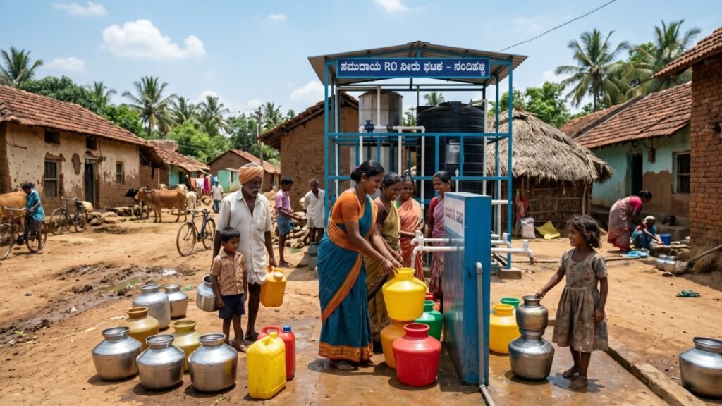 Srirampura Village, Bengaluru Outskirts: A community RO water plant installed in Srirampura village, on the outskirts of Bengaluru, is now benefiting over 2,000 residents – people who live less than 30 kilometres from the city’s central business district but who, until the plant was installed, had no reliable access to purified drinking water. This is the paradox of peri-urban Karnataka: proximity to wealth does not guarantee access to the most basic necessities.