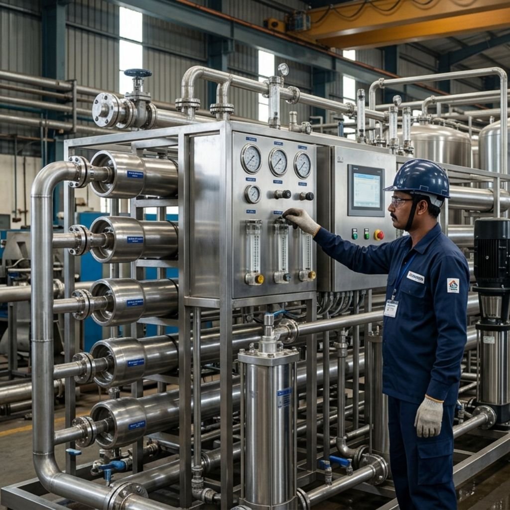Industrial RO systems produce 200+ liters per hour, serving manufacturing plants, processing facilities, and large-scale operations.